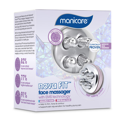 Manicare NOVA FIT™ is a rechargeable facial massager designed with electronic muscle stimulation technology, in a chic compact device to transform any in-home, age defying skincare routine. Utilising electronic muscle stimulation technology, NOVA FIT™ creates mini workouts via gentle contractions on the often forgotten forty-three facial muscles; to improve tone, firmness and support skin rejuvenation for a healthy glowy appearance. This unique device also includes a relaxation mode which gently kneads the skin to relieve tension. This setting is perfect to help unwind in the evening and helps promote sleep wellness.