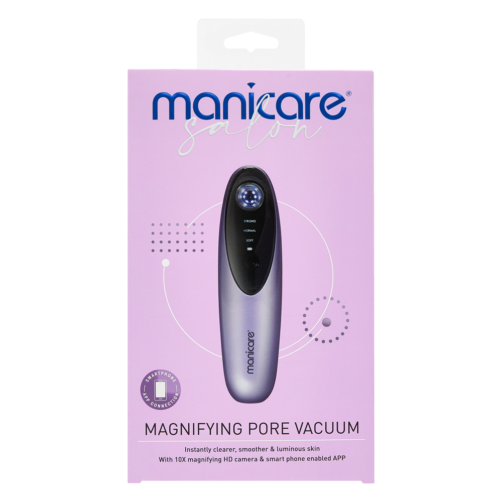 Manicare® Salon Magnifying Pore Vacuum is a rechargeable extraction device that uses vacuum suction to remover debris from pores. The in-built 10X magnifying HD camera combining with 3 levels of vacuum suction intensity helps you to visibly clear congested skin with ease; to helpachieve instantly clearer, smoother and luminous skin