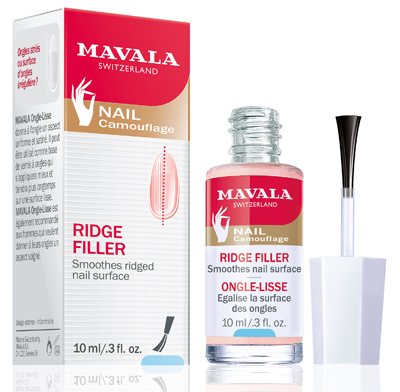 Mavala Switzerland Ridge Filler evens out and smooths nail surface, for nails that have pronounced ridges or other surface irregularities. Brush on before manicure or use on its own for a natural sheen.