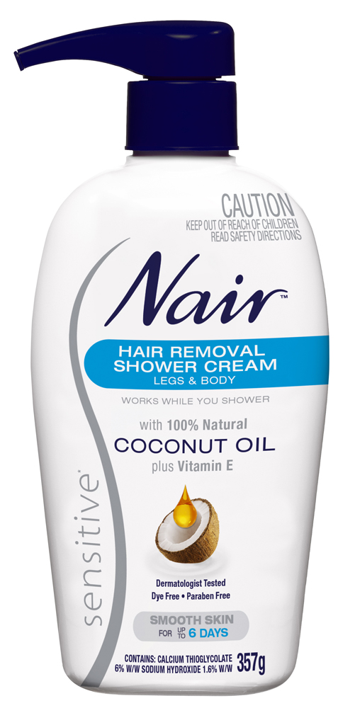 Nair Sensitive Shower Cream with 100% Natural Coconut Oil plus Vitamin E is a simple to use, pain-free cream that removes body and leg hair while showering. Formulated with sensitive skin in mind, the formula is enriched with 100 per cent natural coconut oil and vitamin E to gently nourish and moisturise the skin. It also has odour neutralising technology that releases a pleasant coconut scent. Simply smooth on, step into the shower and let the water resistant cream do all the work. In as little as four minutes, skin is left soft, silky and smooth. Includes a specially designed sponge for effective application and removal. Free from dyes and parabens.