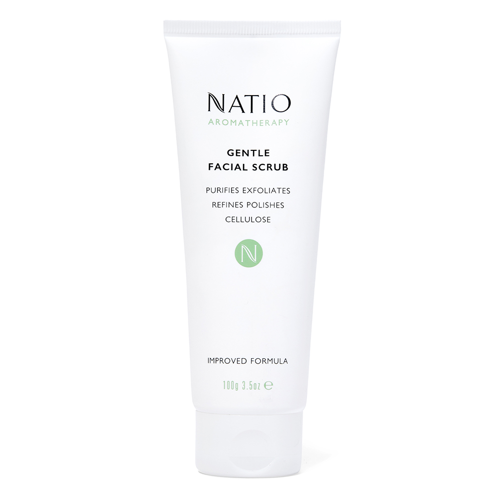 Natio Aromatherapy Gentle Facial Scrub is an extremely delicate skin refiner that gently eases away complexion-dulling impurities, excess oils and expired cells. Gentle, plant-derived cellulose exfoliants gently buff, refine and smooth skin for a fresh and radiant complexion. Aloe and Squalane promote hydration and moisture balance, keeping skin feeling soft, silky and supple.
