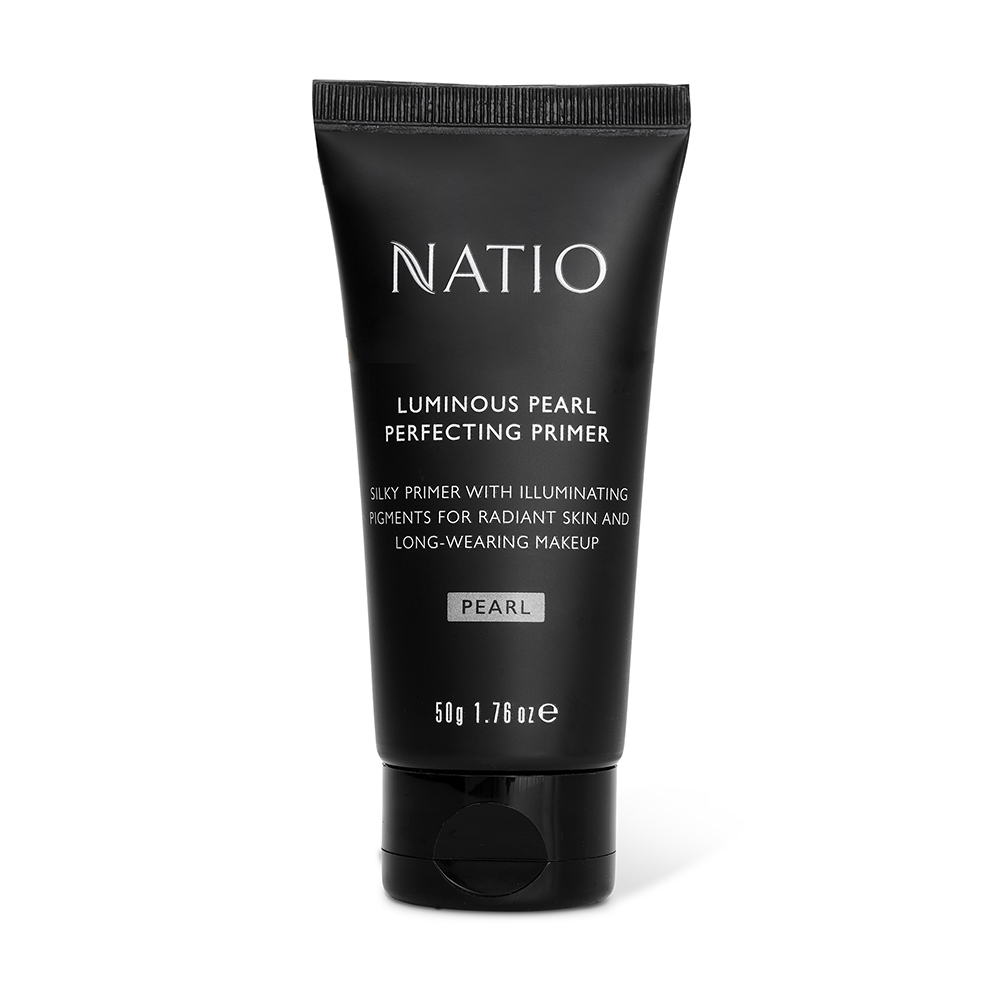 Natio Luminous Pearl Perfecting Primer is a silky priming serum that bathes skin in a delicate veil of luminous pearlescence. Formulated with fine mineral pigments that capture and diffuse light across the skin, the ultra-flattering formula produces a soft, radiant glow and gently evens out the complexion. Nourishing oils of Jojoba and Pomegranate with Vitamin E soften, smooth and prepare skin for flawless and long-wearing application of makeup. For all skin types.