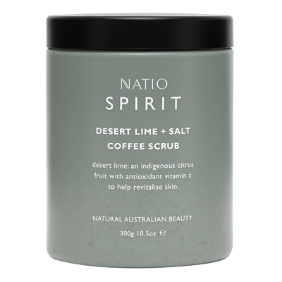 Natio Spirit Desert Lime + Salt Coffee Scrub is an energising body scrub to buff away dull skin and invigorate the senses. Vitamin C rich, antioxidant powerhouse Australian desert lime helps revitalise and rejuvenate for skin glowing with health.