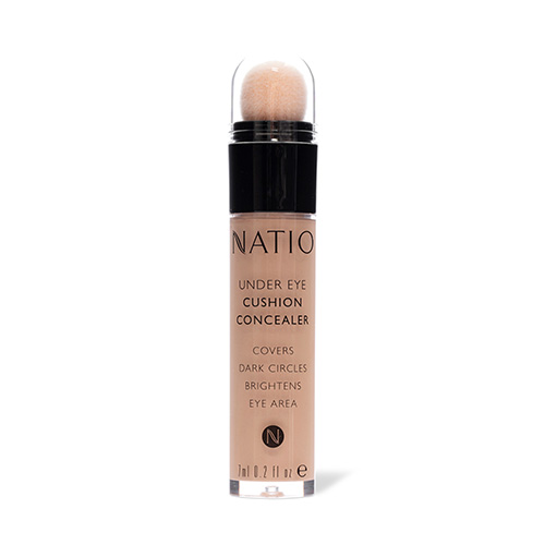 Natio Under Eye Cushion Concealer (two shades) cleverly conceals dark circles while brightening the complexion with this lightly luminous, velvety cream concealer. Formulated with antioxidant-rich Pomegranate, Kakadu Plum and skin-nourishing Vitamin E plus an innovative cushion applicator for smooth, blendable and hydrating coverage. Available in two shades to suit most skin tones: Ivory and Beige.