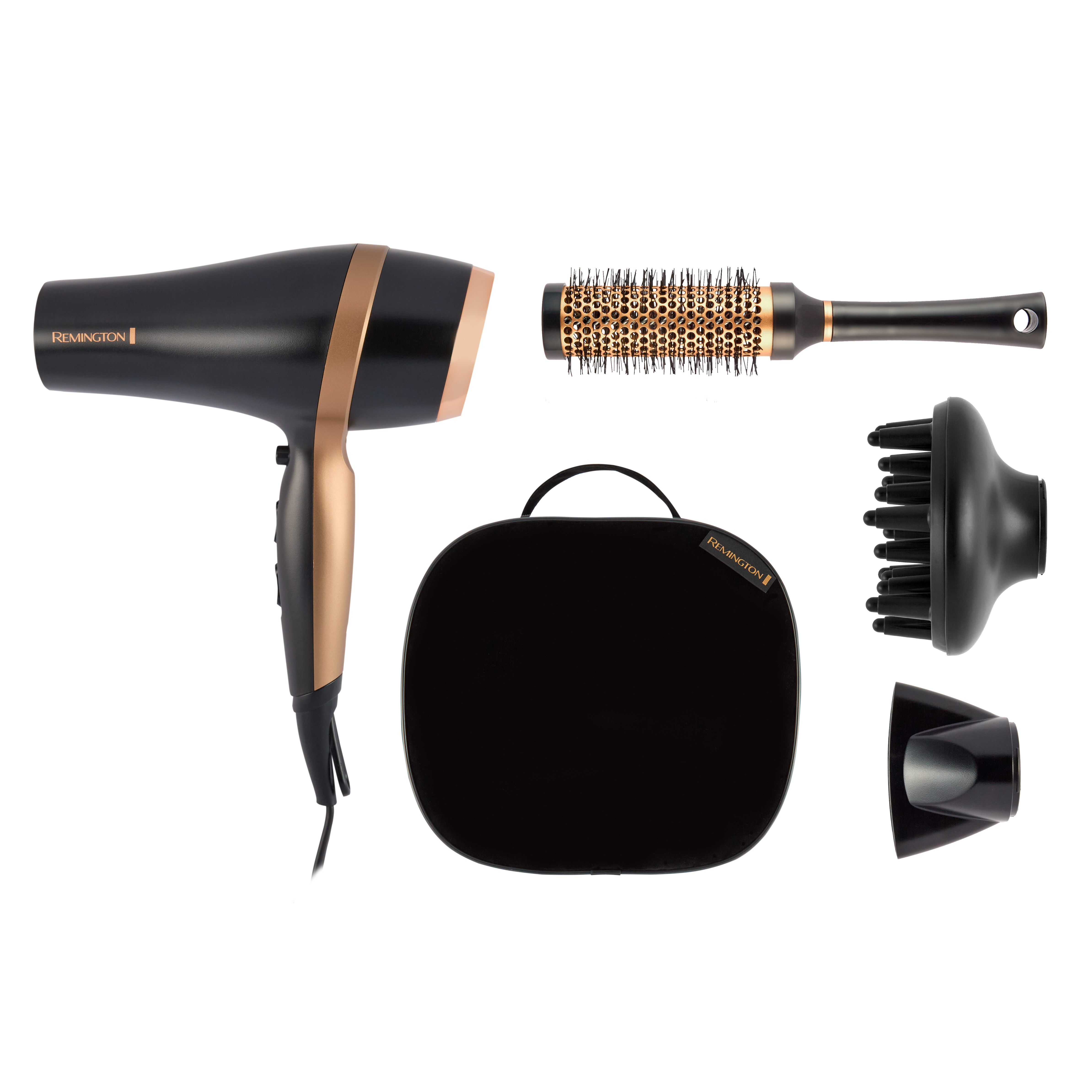 - Includes: premium storage bag, round brush, concentrator, diffuser