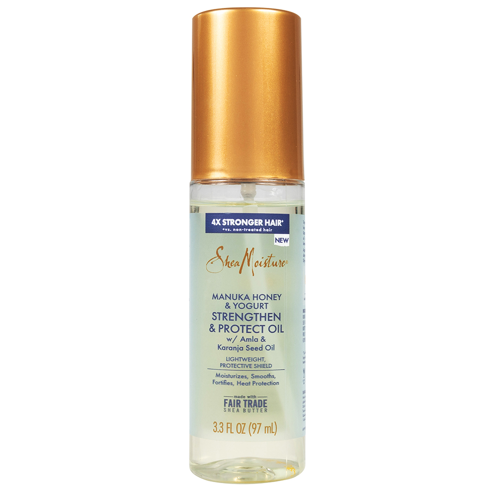 SheaMoisture Manuka Honey & Yogurt Strength and Protect Oil is enriched with natural ingredients to give you soft, silky and defined curls! Experience healthier-looking and 1.5X shinier hair without weighing it down. This multi-benefit formula, blended with Manketti Oil, adds 4X more moisture with 24-Hour Frizz and Humidity Control. When used before heat styling, this oil can help reduce breakage by 83%. This multi-benefit formula provides 24-hour frizz and humidity control. Experience 5X stronger hair when you treat your hair with SheaMoisture Manuka Honey & Yogurt Strength and Protect Oil before heat styling.