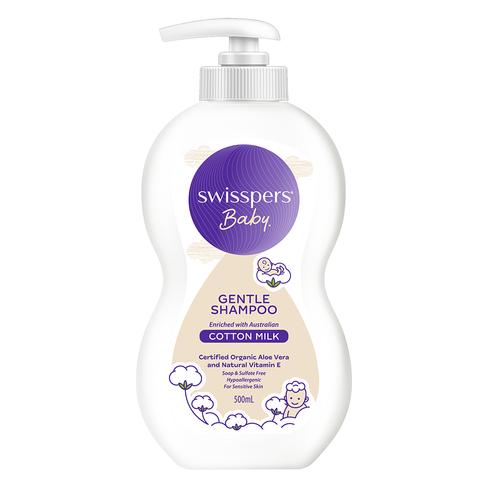 Swisspers® Baby Gentle Shampoo is mild and extra soft on baby’s hair and scalp. Enriched with Australian cotton milk to be extra gentle on newborn, dry and sensitive skin. Proudly made with cotton extracts harvested from Australian cotton farms, cotton milk is a nourishing blend, naturally rich in omega 6 and 9. Infused with the natural goodness of certified organic aloe vera and natural vitamin E leaving hair clean, soft and shiny. It is pH balanced, hypoallergenic, dermatologically tested and suitable for sensitive skin. Vegan friendly, not tested on animals and Australian made and owned.
