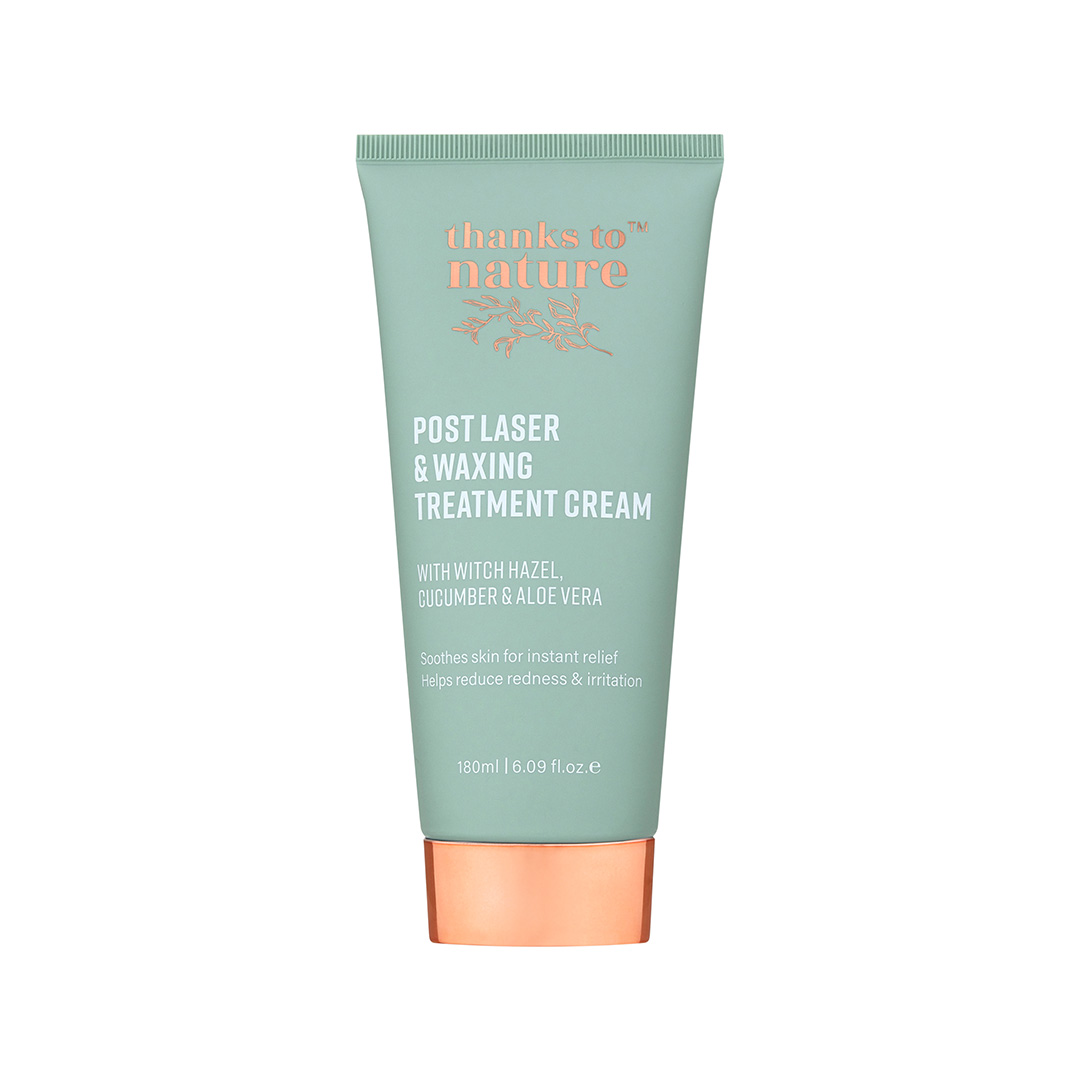 Thanks To Nature Post Laser & Waxing Cream is enriched with Witch Hazel, Cucumber & Aloe Vera to cool and soothe skin. Helps to reduce redness and irritation. Apply treatment cream to post lasered or waxed skin up to 4 times per day. Use for several days after treatment.