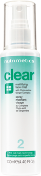 Nutrimetics Clear Mattifying Face Mist is a facial mist that minimises the appearance of pores, refines skin texture and combats excess oil. Formulated with a phyto-active ginger complex, natural oil regulators and aloe vera juice, it helps to restore skin’s natural balance for a clearer complexion. The addition of tri-peptide anti-red-mark technology works to accelerate skin repair. The mist is ideal for combination and oily skin.