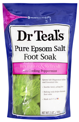 Dr Teal’s Foot Soak – Revitalize & Refresh With Cooling Peppermint is a pure epsom salt foot soak with cooling peppermint. It helps to soothe tired, aching feet and discomfort from muscles. Pour at least two cups of Dr Teal’s Soaking Solution under warm running bath water, then soak for 20 minutes and let the rich minerals soak away the discomfort. If desired, mix a handful of the Soaking Solution with a handful of favourite body wash. Gently massage mixture onto skin to slough away dry patches, revealing a healthier looking complexion. Also formulated with baking soda to help eliminate foot odour.