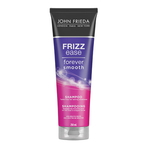 John Frieda Frizz Ease® Forever Smooth Shampoo helps tame frizzy hair for long-lasting, sleek style. The hair straightening shampoo, infused with John Frieda’s new Frizz Immunity Complex, helps to combat the porosity of frizzy hair. Pair with our Forever Smooth conditioner to improve your hair’s texture and help prepare for frizz-free style. Infused with Keratin Drops and Frizz Immunity Complex. Helps you achieve smooth, soft hair. Fights frizz for sleek styles.