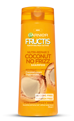 Garnier Fructis Coconut No Frizz Shampoo is a shampoo specifically designed to intensely nourish dry and unmanageable hair, leaving it feeling smooth with no weigh-down. Paraben and silicone-free, this formula combines coconut cream and triglycerides to hydrate and protect hair.
