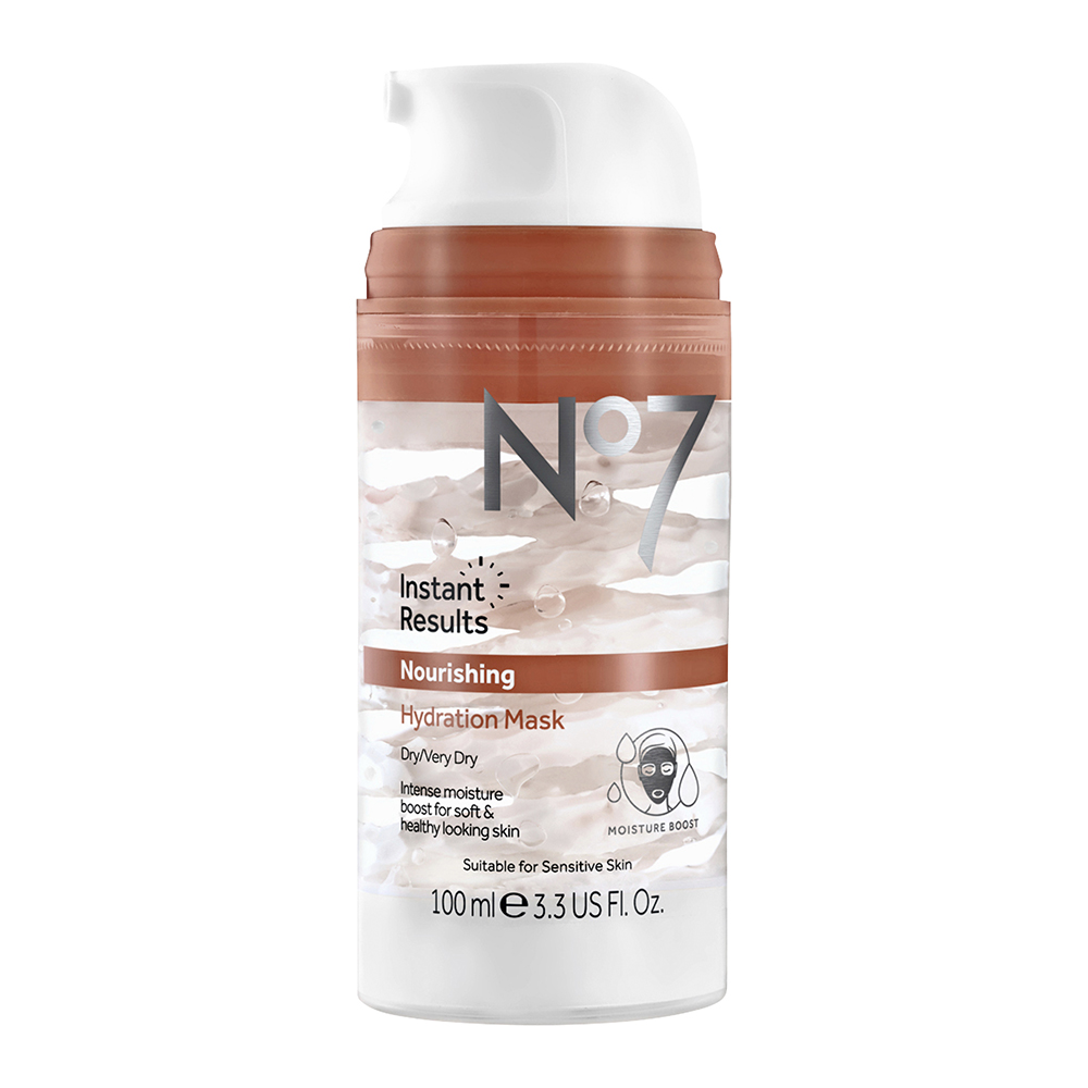 No7 Instant Results Nourishing Hydration Mask contains a blend of skin identical lipids that instantly get to work to intensively moisturise your skin. The result: skin feels hydrated, beautifully soft and has a bright appearance. With continued use, No7’s tailored skin nutrition for dry skin types works to help promote healthy looking skin. For best results, sweep generously over clean skin. Relax for 3 minutes, tissue off and rinse away. For a more intensive treatment, leave for up to 10 minutes. Can be used 2-3 times weekly.