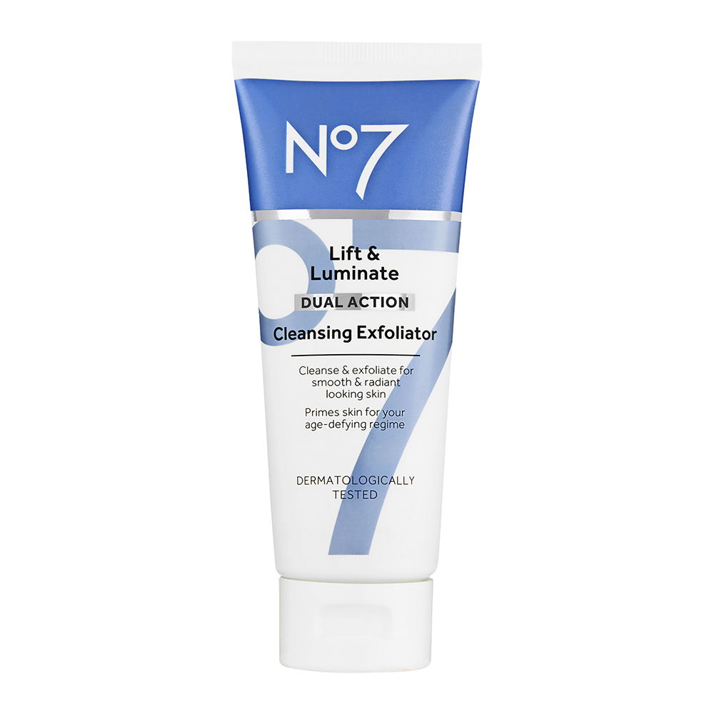 No7 Lift & Luminate Dual Action Cleansing Exfoliator cleanses and exfoliates for smooth and radiant looking skin. For best results, gently massage into wet skin, avoiding the delicate eye area and wash away with warm water. Use as the first step of your morning and evening age-defying regime and follow with your No7 Lift & Luminate Serum and Moisturiser.