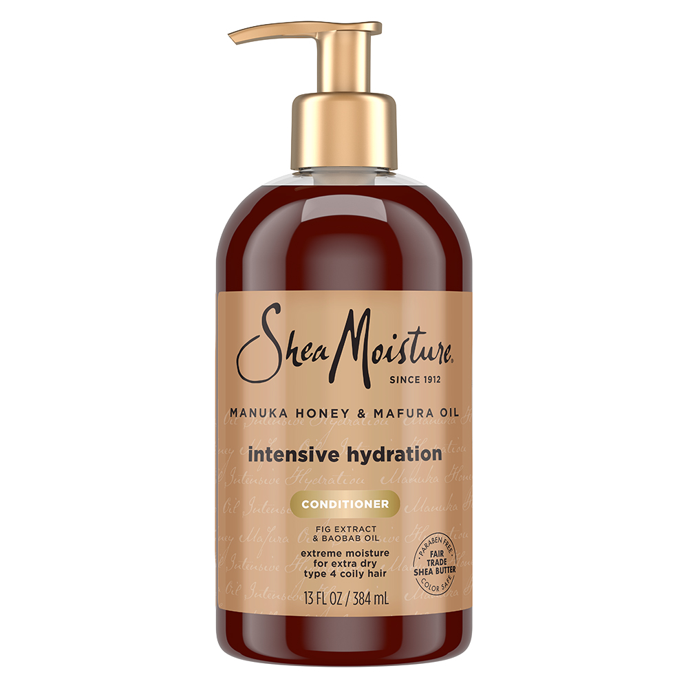 SheaMoisture Manuka Honey & Mafura Oil Intense Hydration Conditioner is a conditioner that helps to restore manageability, leaving hair soft, shiny and easy to style. The Manuka Honey & Mafura Oil range provides intensive hydration, ideal naturally dry hair. Key ingredients include organic shea butter, Manuka honey, mafura and baobab oils, and African rock fig.