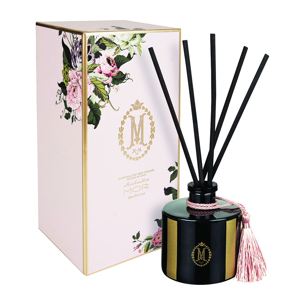 Opulent floral decadence entwined with the elegance of sweet Vanilla Musk exudes from this exquisite Reed Diffuser. Complete with Black Reeds and adorned with a tassel, let the mesmerising scent of Marshmallow gloriously rapture and add a nostalgic ambience to any space.