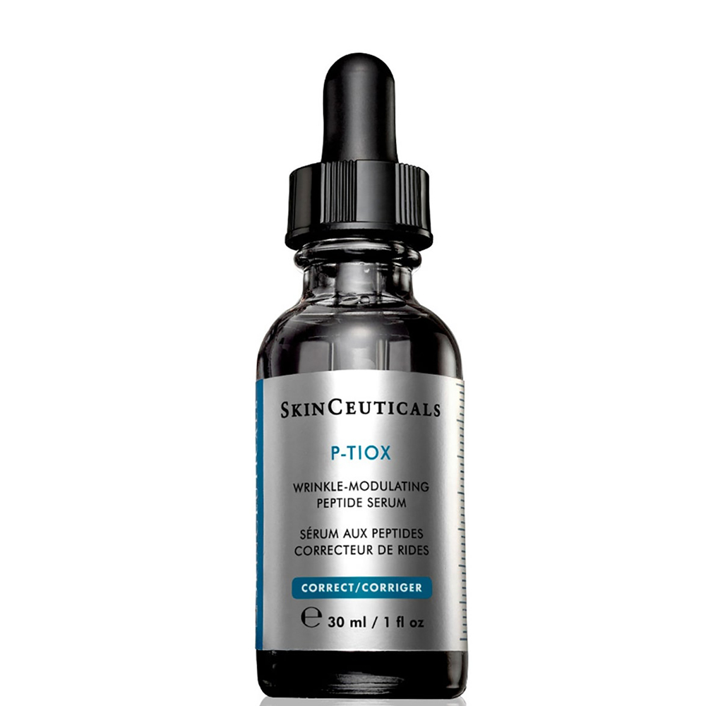 SkinCeuticals P-TIOX Peptide Serum is an advanced peptide anti-wrinkle serum scientifically proven to reduce the appearance of 9 types of wrinkles by up to 20%. This wrinkle modulating serum is formulated with an advanced peptide complex of hexapeptide and dipeptide, to reduce the appearance of key contraction lines. This first-of-its-kind peptide serum formula is amplified with potent ingredients: 5% PHA, 5% niacinamide and laminaria extra, to visibly improve skin texture, radiance in 1 week and maximize visible anti-aging results. P-Tiox visibly reduces signs of aging with long-lasting results even after 3 months. Leaves the skin feeling plump and smooth, thanks to its formulation with peptides and skin-benefitting ingredients like hyaluronic acid, ceramides, and glycerin.