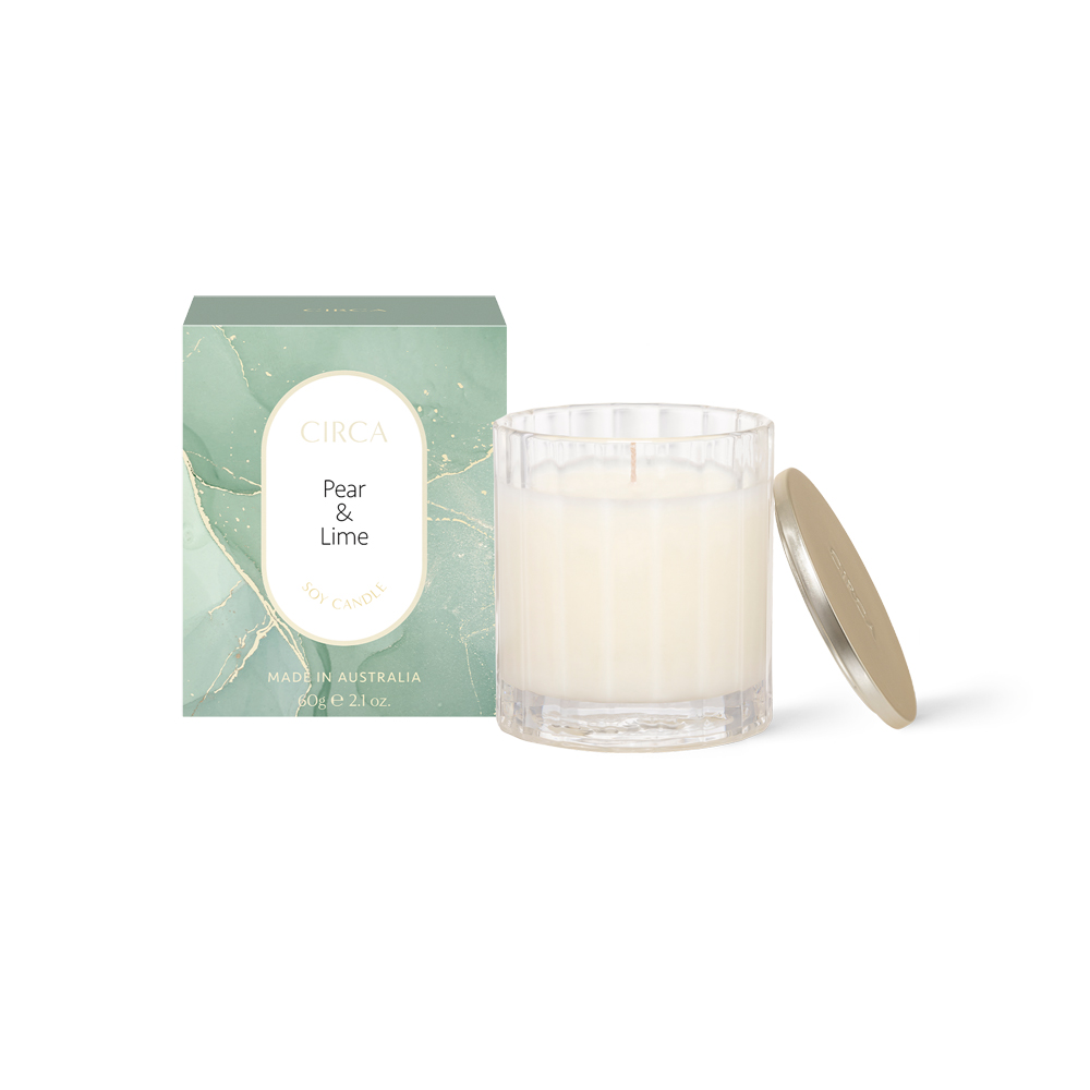 CIRCA Pear & Lime Soy Candle is made from natural soy wax and high quality fragrance oils. The vibrant mix of Anjou Pear and Mexican Lime has the powerful punch of a reviving drink on a hot day. Enriched by lush Midnight Jasmine and stimulating Vanilla and Sandalwood, this invigorating fragrance is the perfect anytime pick-me-up.