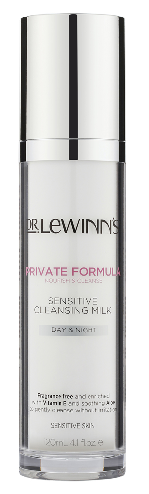Dr LeWinn’s Private Formula Sensitive Cleansing Milk is a mild cleansing milk that is free from parabens and sulphates, with a lightweight silky texture that works to dissolve makeup without irritation. Formulated with vitamin E and soothing aloe, skin will be left feeling nourished and softened. Best suited to sensitive skin.
