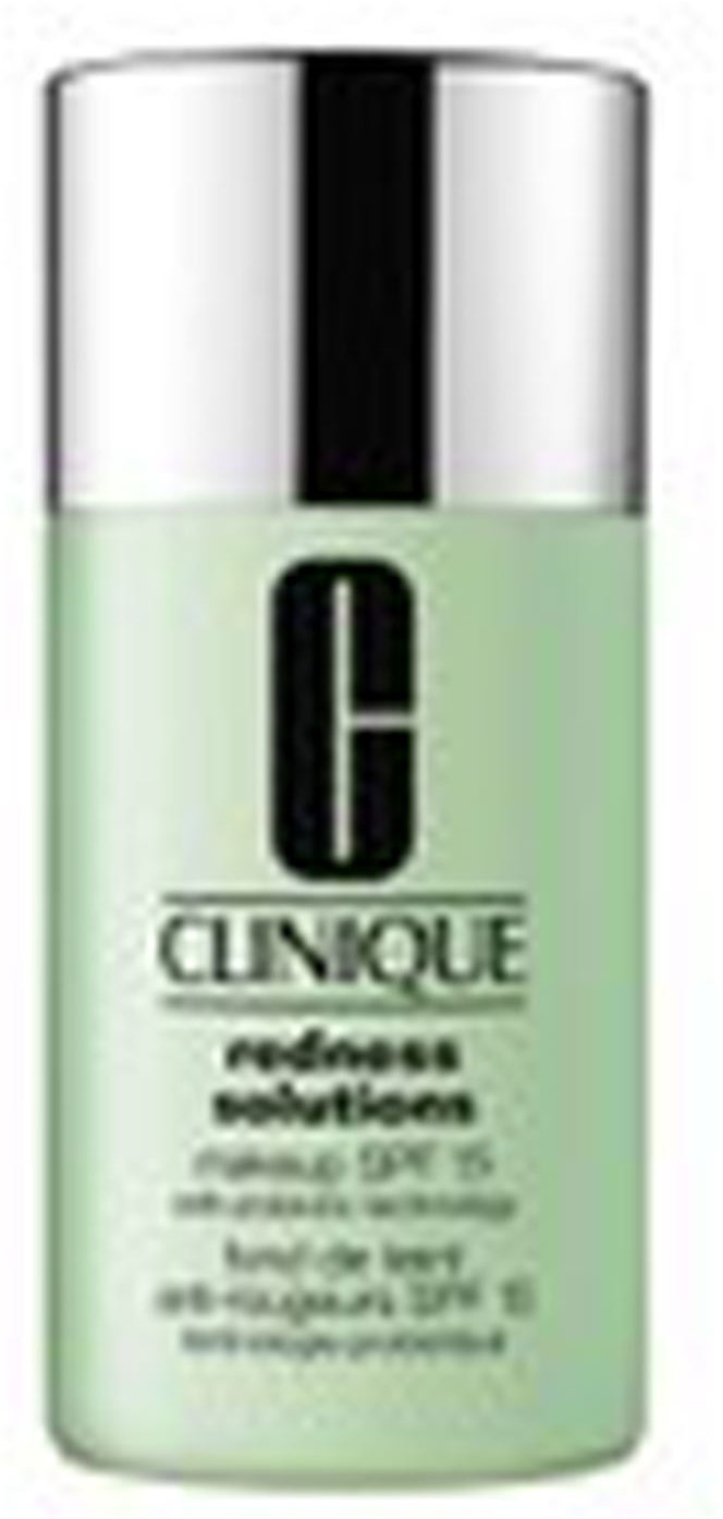 CLINIQUE Redness Solutions Makeup SPF 15 with Probiotic Technology is perfect for all skin types especially those who suffer from facial redness. Contains neutralizing pearls, magnolia grandiflora bark extract and mushroom extract to soothe, calm and reduce redness; caffeine and murumuru butter help to protect the skins moisture barrier. The formula also includes probiotic technology to strengthen the skin and improve skin health. Contains vitamin E as well as a blend of sunscreens for UVA and UVB protection. Allergy Tested, 100% Fragrance Free, Oil-Free and Non-Acnegenic. Available in six shades.