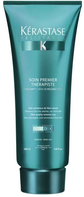 Kérastase Résistance Thérapiste – Soin Premier Thérapiste is a pre-shampoo product for very damaged hair. The lightweight formula contains Fibra-Kaps technology to nourish damaged hair, and myrothamnus flabellifolia to restore hair fibres. It helps to protect hair during the washing process, and is suitable for fine hair.