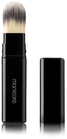 Manicare Retractable Foundation Brush features two-toned, super soft, ultra fine synthetic bristles that ensure a smooth, controlled application and even finish which is deal for application of liquid, cream, powder and stick foundation. This retractable brush comes with a secure lid so you wont make a mess or snag the bristles.