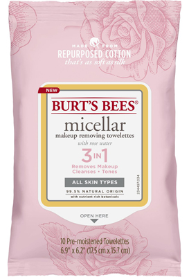 Burt’s Bees Rose 3-In-1 Micellar Makeup Removing Towelettes are cleansing towelettes that are infused with responsibly sourced rose water. These multi-tasking cleansers use micellar technology to trap and lift away dirt, oil and other impurities for a fresh and clean complexion while also hydrating the skin. Formulated without parabens, phthalates, SLS or petrolatum. Not tested on animals and features recyclable packaging.