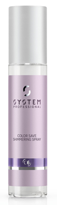 System Professional Color Save Shimmering Spray is a non-aerosol, high gloss shine spray with an anti-frizz effect that makes sure that fly-aways are tamed and controlled without stickiness. The glimmer particles optimise light reflection on the hair surface and illuminate every hair colour for maximum shine.