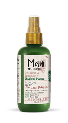 Maui Moisture Thicken & Restore + Bamboo Fibre Blow Out Mist is a fortifying hair mist infused with exotic bamboo fibres, castor oil and neem oil. It helps boost blow outs for big, voluminous strands.
