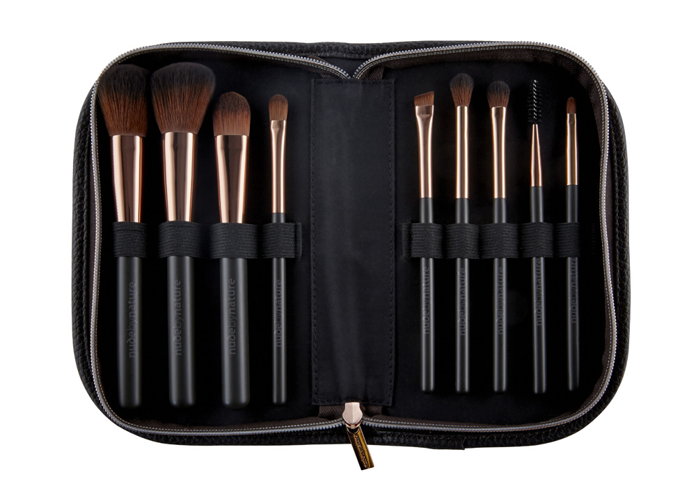 Nude by Nature Ultimate Collection – The Professional Brush Set is a brush set that contains nine high-quality makeup brushes. The set is housed in a luxury brush case.