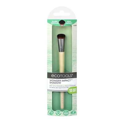 EcoTools Wonder Impact Shadow Brush is a brush designed with 25,000 bristles for intense colour impact of powder and cream eye shadows. Brush can be used wet or dry.