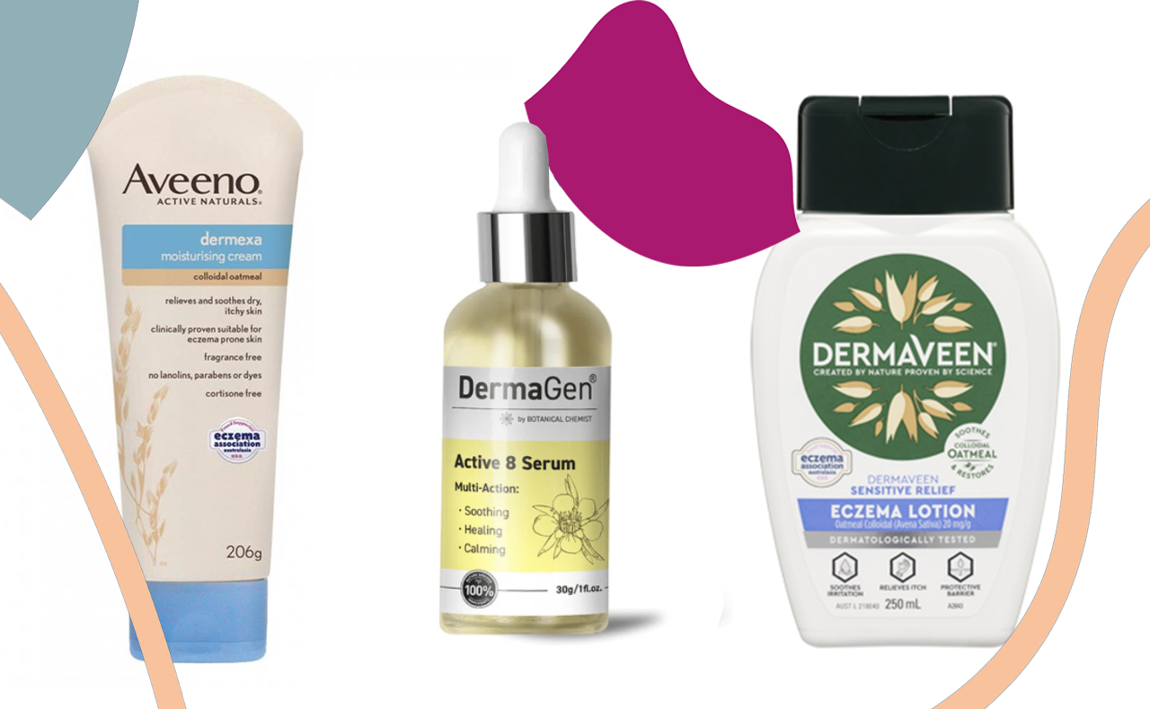 When treating eczema, look for ingredients which work to reduce inflammation and repair compromised skin barriers. Fragrance-free moisturisers or products containing ingredients such as oatmeal, manuka oil, avocado and chamomile will be beneficial in soothing irritated skin.