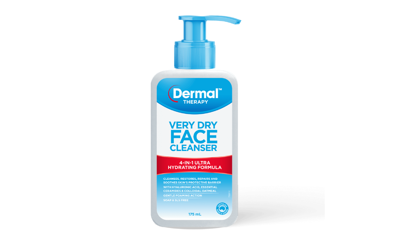 Ridding the face of any dust, dirt and impurities that build up through the day is the single most important step in keeping the skin clean and clear. To keep skin balanced and calm, you’ll want to reach for a cleanser formula that falls into the ‘gentle’ category, like the Dermal Therapy Very Dry Face Cleanser ($18.99 at Dermal Therapy).