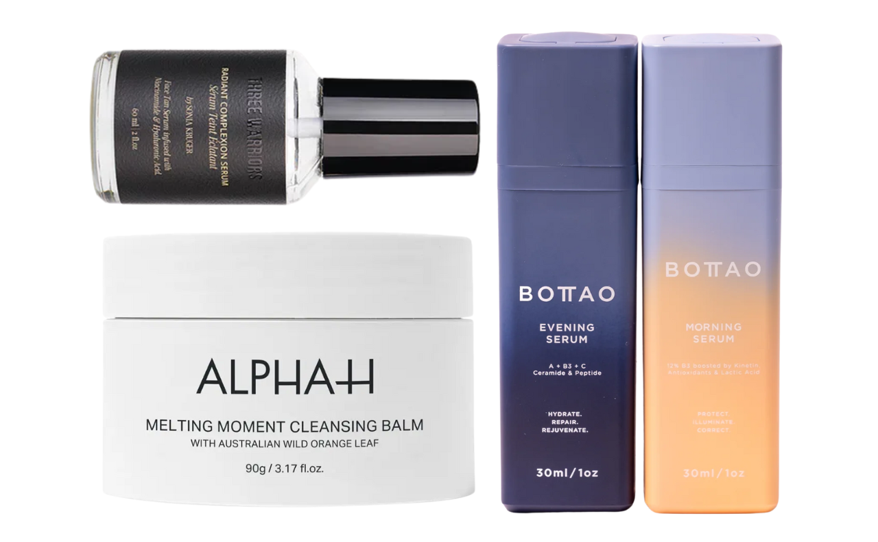“I love to use the Three Warriors Radiant Complexion Serum ($80 from The Iconic) at night for a super-light, sunless summer glow,” says Sam, which features ingredients like hyaluronic acid, marine collagen, and niacinamide.