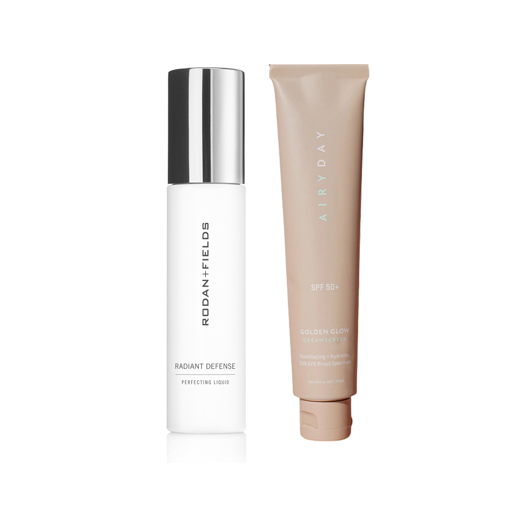 bh recommends: Rodan + Fields DERMACOSMETICS Radiant Defense Perfecting Liquid Broad Spectrum SPF 30 ($95 at Rodan + Fields) and the AIRYDAY GoldenGlow Dreamscreen SPF50+ ($49 at AIRYDAY)