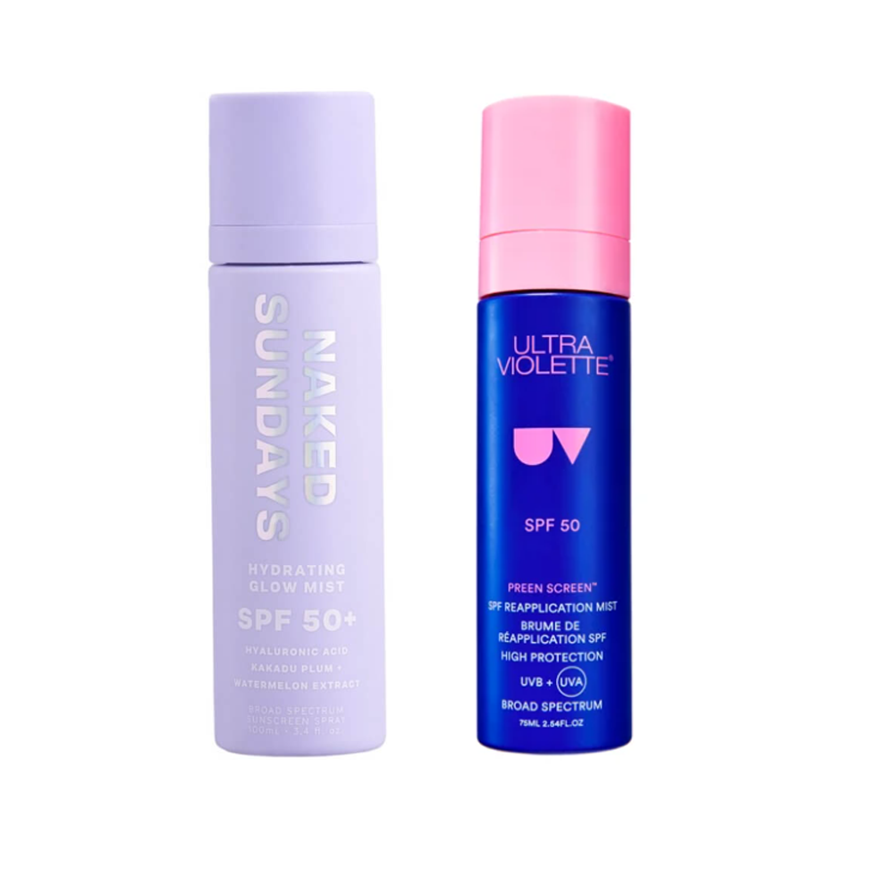 Our favourite SPF’s for a quick reapplication? That’s easy, the Naked Sundays SPF50+ Glow Mist Top Up Spray ($39.95 at Naked Sundays) and Ultra Violette’s Preen Screen SPF50 Reapplication Mist ($42 at Adore Beauty).