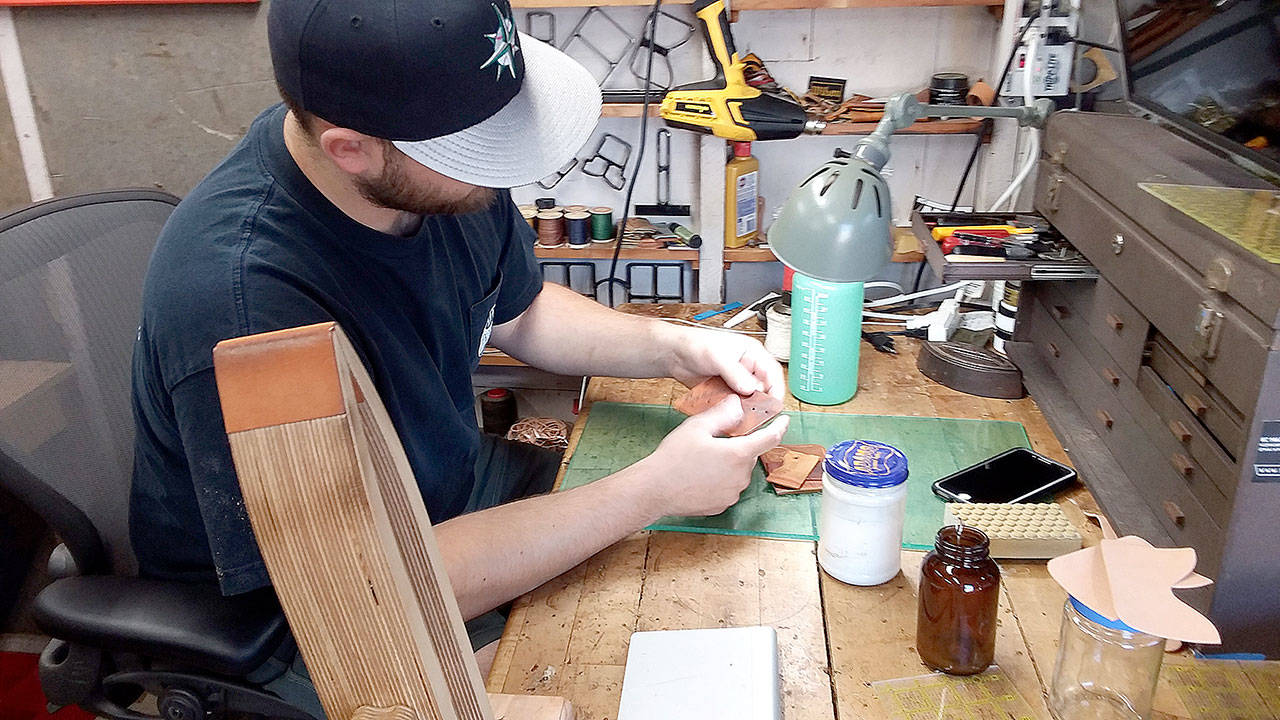 Mack, who played baseball for Port Angeles Lefties owner/coach Matt Acker at Green River Community College and at Whitworth University, decided to put his life’s passion into a business called Mack Provisions, and it’s turned into an 80-hour-a-week profession, toiling away in his work shed, cutting the leather and hand-stitching it.