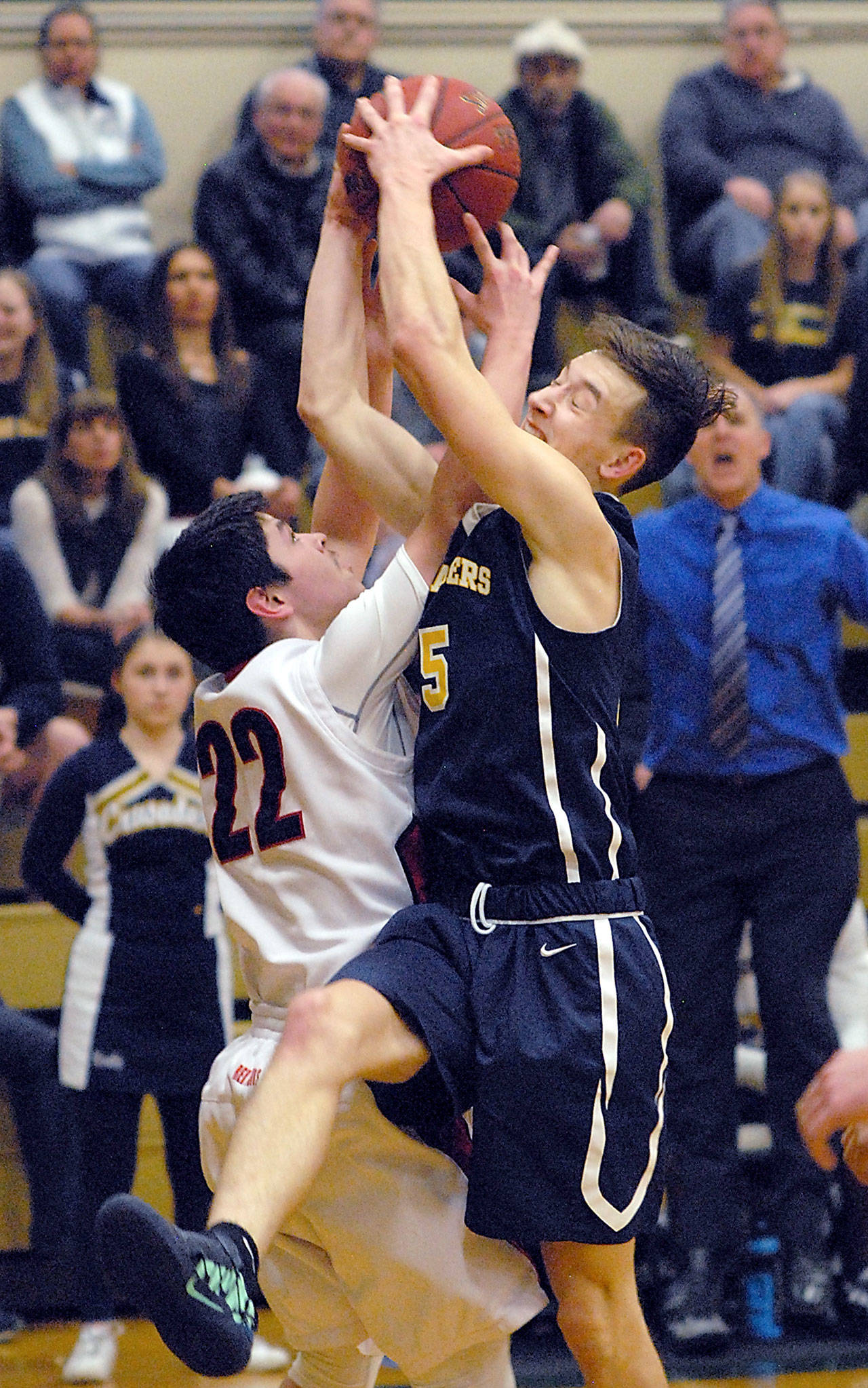 Tacoma Baptist’s 6-foot-2 Bradley Swillie heated up in the third quarter, tossing in four 3-point baskets, including three straight makes during an 11-0 run that pushed the Crusaders’ lead to 49-15 late in the third quarter.