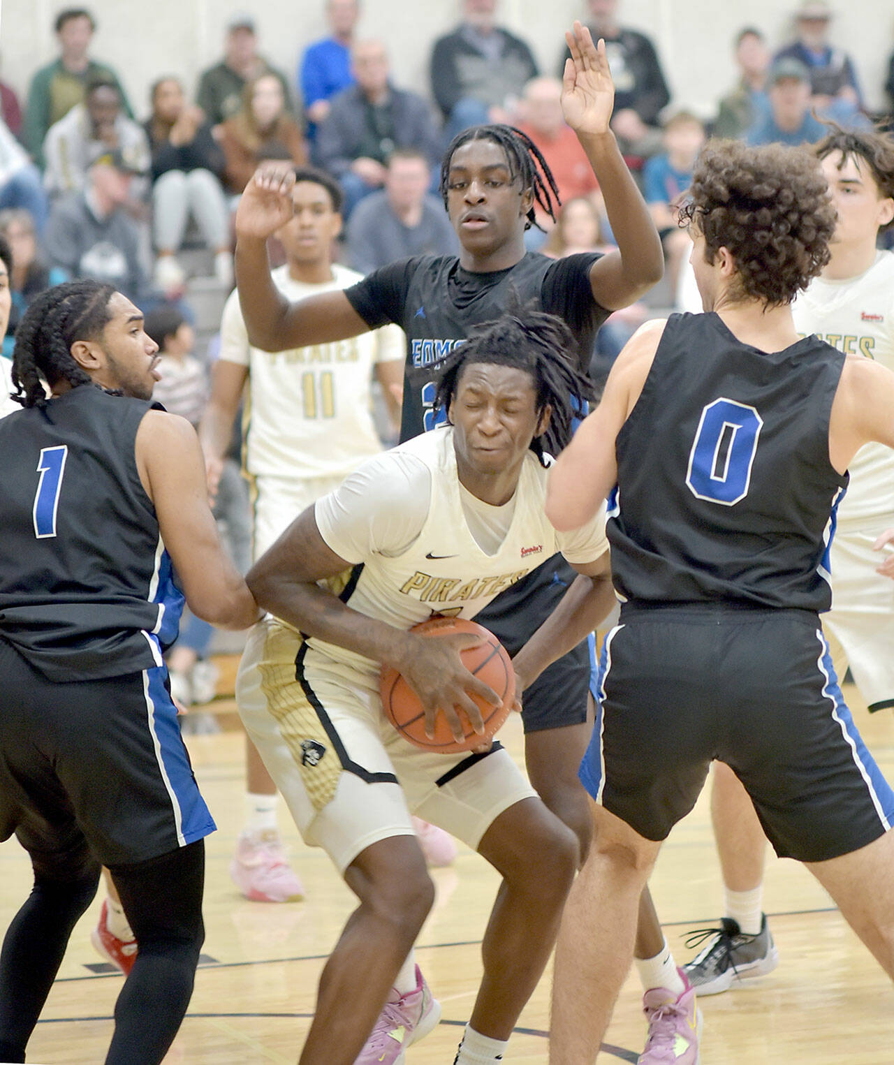 The Pirates had one last rally left. Onakpoma was fouled again and hit a free throw. He missed his second shot from the charity stripe, but teammate Aiden Olmstead got the rebound and scored a basket. Onakpoma then came up with a steal on defense and hit a huge 3-pointer at the 2:20 mark to make the score 73-67.
