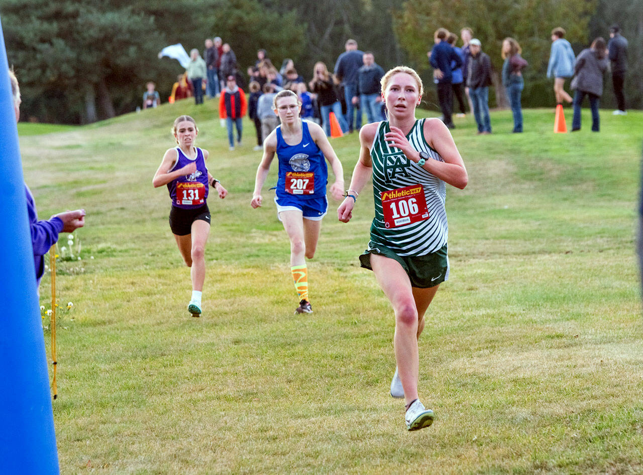 Port Angeles senior Leia Larson posted the top individual performance for any North Olympic Peninsula athlete, finishing the 3.1-mile course in fourth in 20 minutes, 1.86 seconds. Larson’s teammate Miriam Cobb placed 15th in 21:51.5, while Storey Schmidt was 17th in 22:14.41 and Isabella Pickett (34th in 23:39.14) and Alice Shields (39th in 24:11.97) rounded out the Riders’ runners.