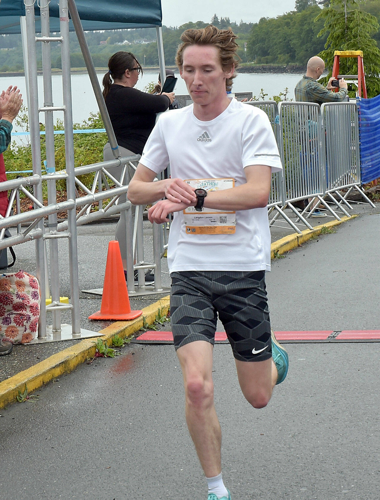 Men’s 5K — Langdon Larson, PA, first, 17:39.05; Andre Campbell, PA, second, 18:54.39; Michael Higuera, PA, third, 19:00.59; Adrian Osborne, Sequim, fourth, 19:06.63; Oliver Westerndorf, Maple Valley, fifth, 19:52.91; Owen Armstrong, Maple Valley, sixth, 20:08.22; Dylan Zehr, Maple Valley, seventh, 20:09.24; Easton Dempsey, PA, eighth, 20:29.81; J. Lieberman, PA, ninth, 20:13.16; Keith LaLonde, Monroe, 10th, 20:28.26; Leyton Larson, PA, 11th, 20:41.63; Michael Boyle, Arlington, MA., 12th, 21:41.5; Avi Allison, Seattle, 13th, 22:09.08; Jamie Dunnett, Nanaimo, B.C., 14th, 22:13.46; C. Dunnett, Nanaimo, B.C., 15th, 22:13.97; Tod Jones, Sequim, 16th, 22:31.5; F. Dunnett, Nanaimo, B.C., 17th, 22:31.88; Ben Tegge, Seattle, 18th, 22:37.44; Brandon Weishhaus, Poulsbo, 19th, 23:14.25; Dylan Vianna, Port Hadlock, 20th, 23:15.46.