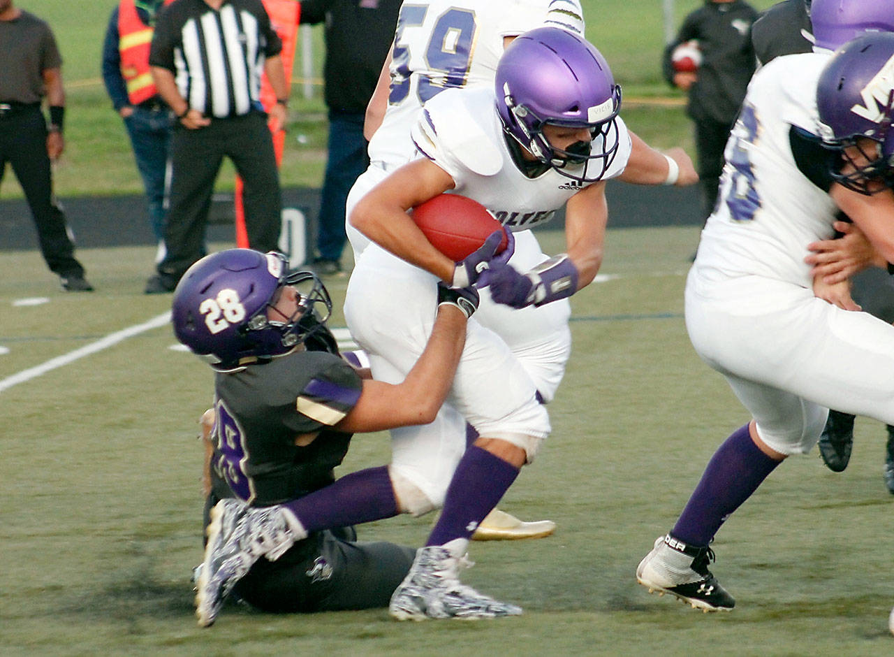 The second and third quarters were marred by a series of miscues from Sequim, with several fumbled snaps turning into turnovers deep in Wolves territory. The Vikings turned two of those mistakes into field goals in the second quarter before Sequim finally got on the board, capitalizing on a muffed punt to take over deep in Vikings’ territory, where quarterback Taig Wiker found Hayden Eaton for a 20-yard touchdown pass.