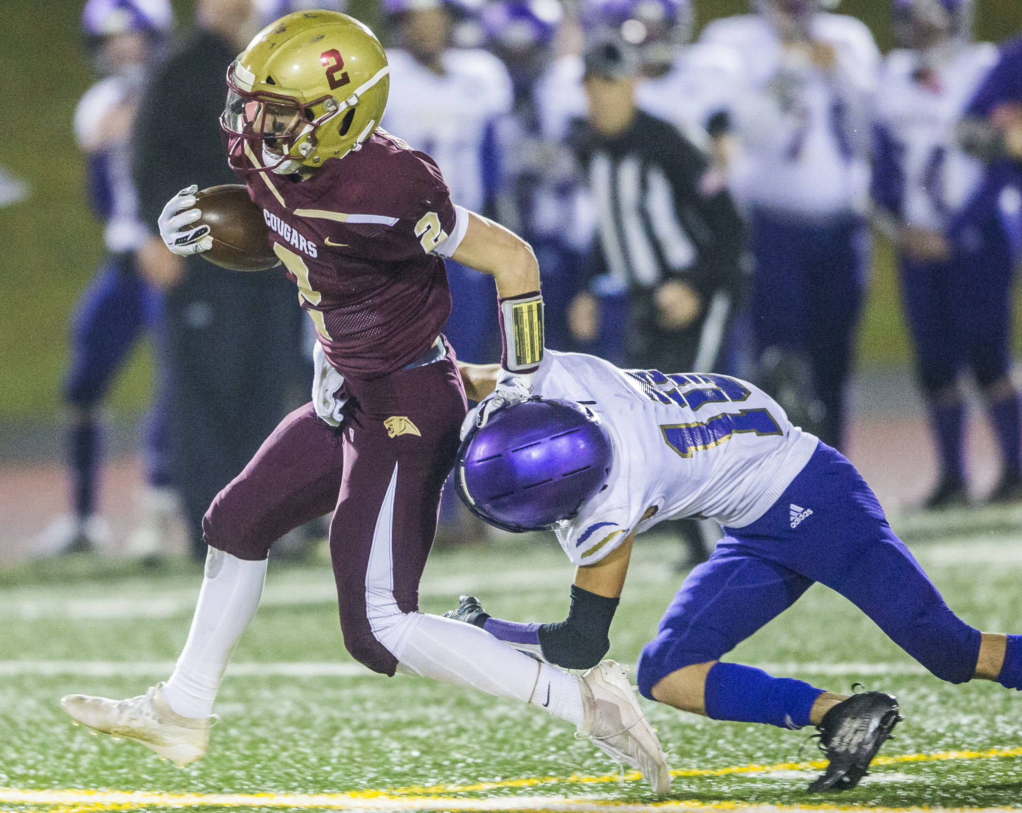 Down 14-6 and facing fourth and 4 from Lakewood’s 34-yard line, Sequim (9-2) elected to go for it on its second drive. The Wolves were looking to force an offsides by the Cougars — and did — but not after calling a timeout as the play clock neared zero. The flag was waived off and Ward was stuffed on a run up the middle out of the timeout.