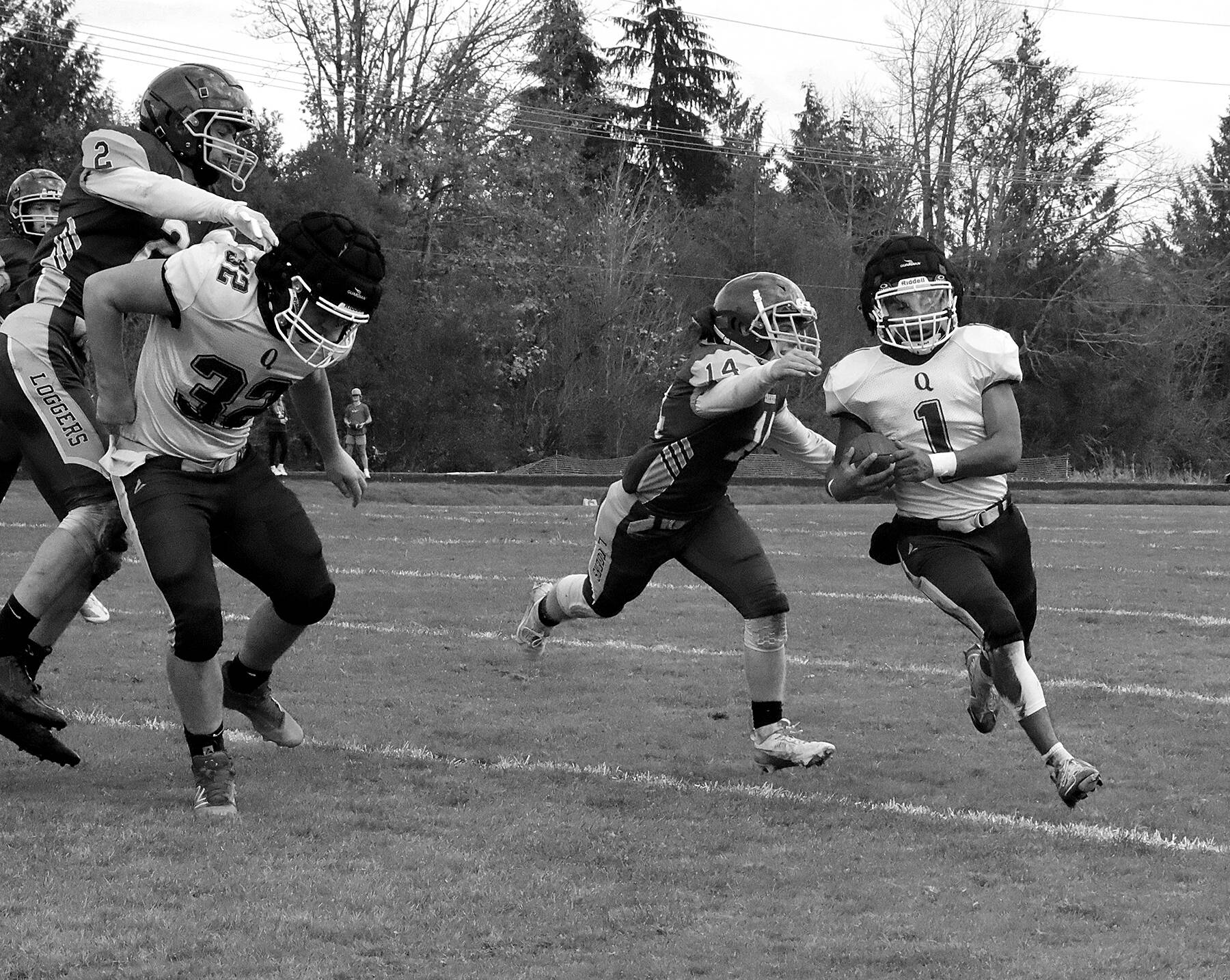 The Rangers racked up 390 yards rushing. The Loggers struggled to run against Quilcene’s defense, but counteracted with a great game from quarterback Henry Bourm, who passed 17-for-21 (80.9 percent) for 169 yards.