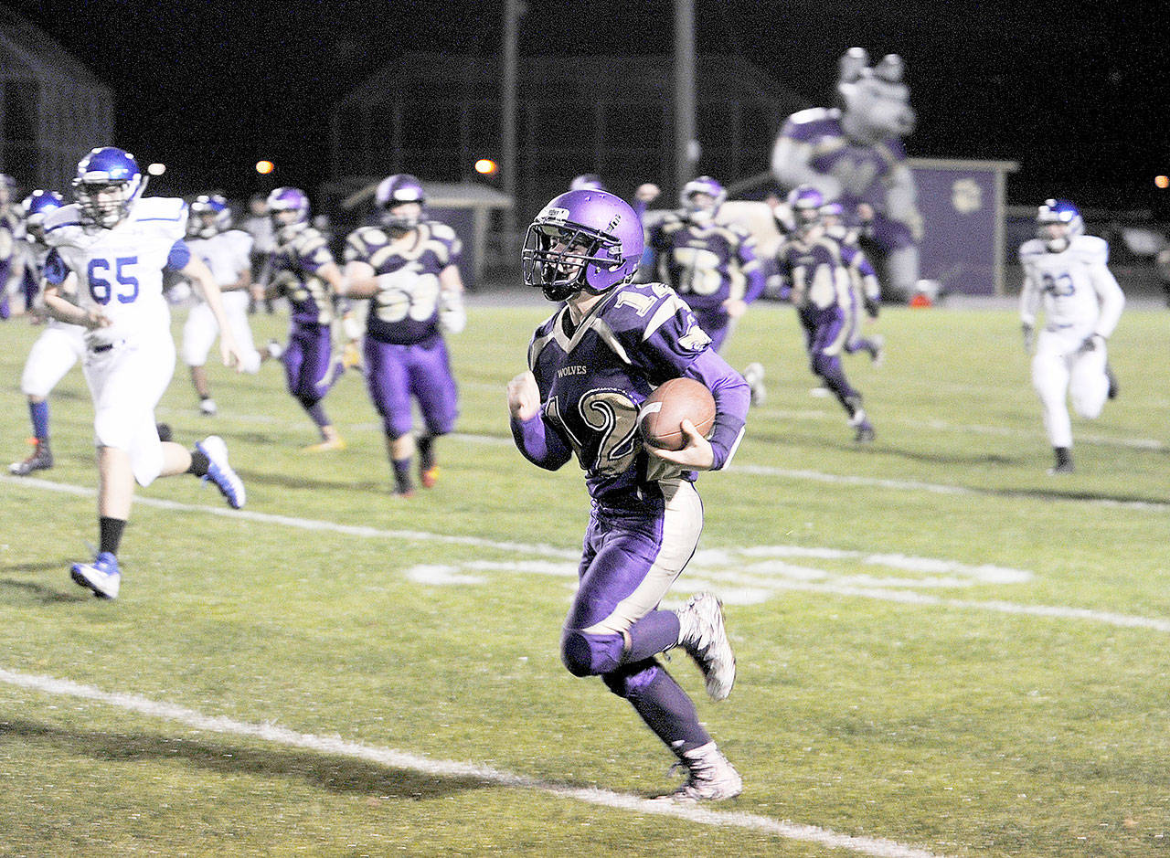 The Wolves’ defense held fast on three North Mason drives inside the Wolves’ 15-yard line on the night, stopping the Bulldogs on fourth down all three times.