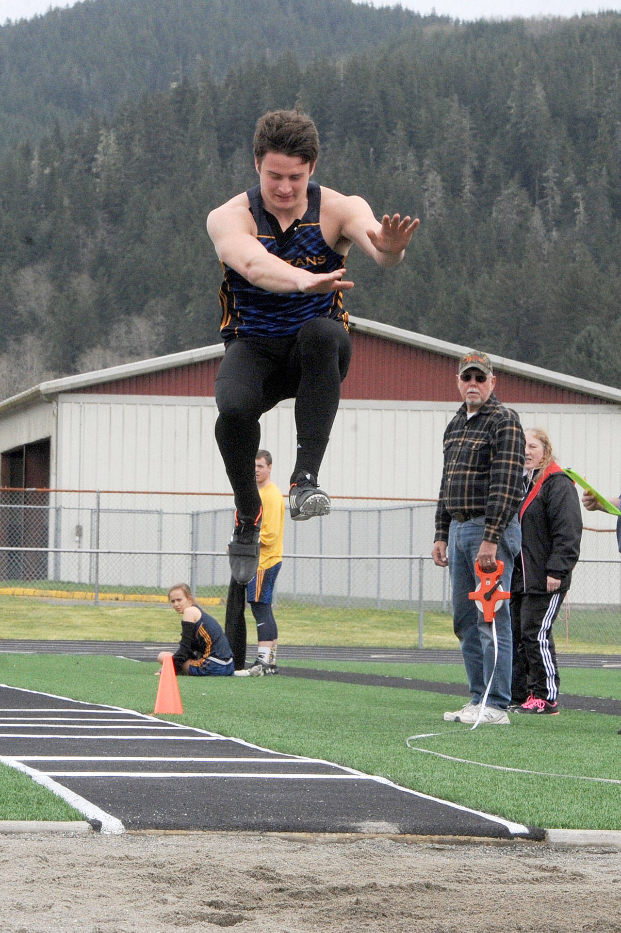 FORKS — Dominating the field events and getting three first-place finishes from Cole Baysinger, the Forks boys won the Forks Lions Club Invitational meet, edging out Port Angeles 122-109.