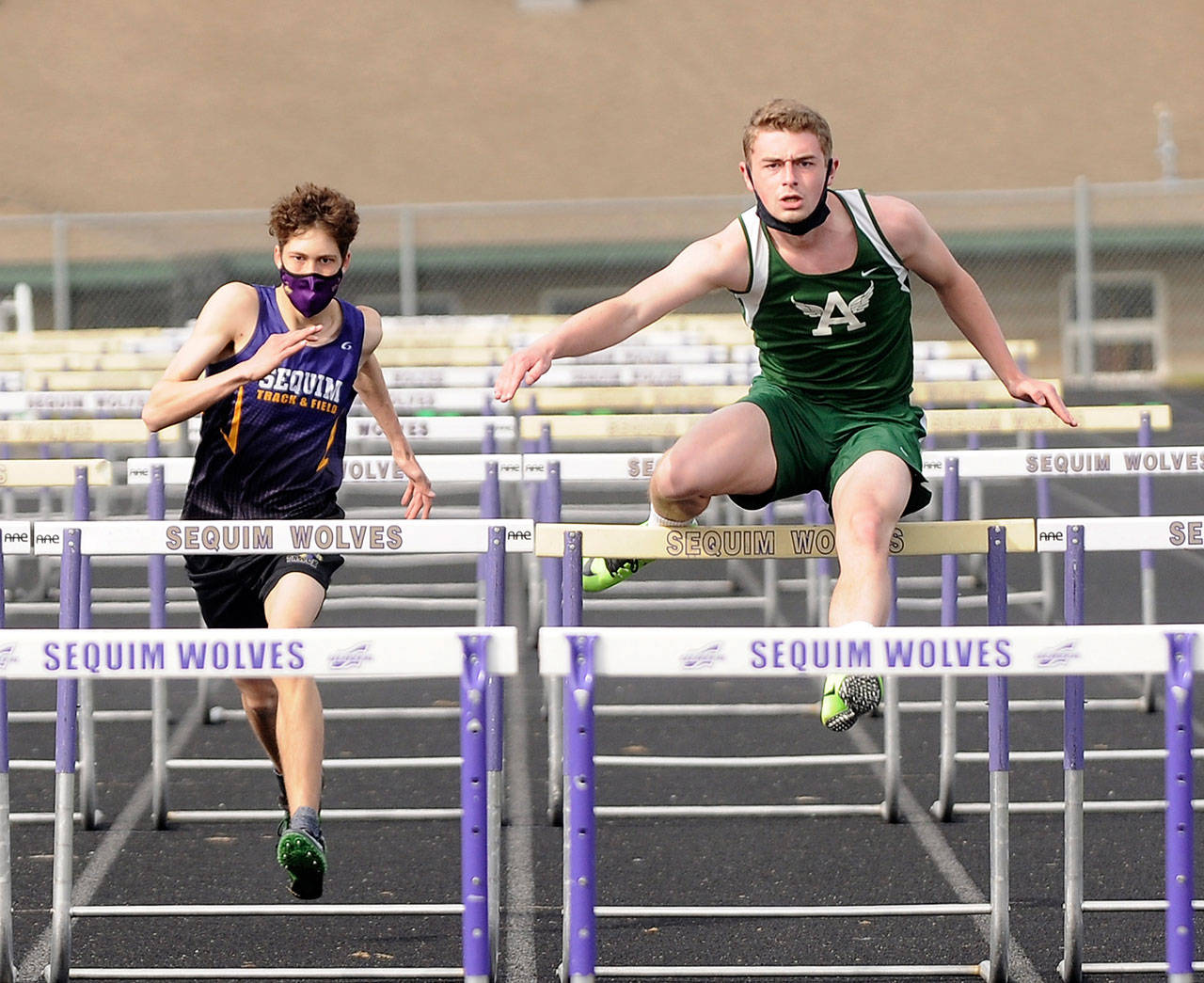 Sequim freshman Taryn Johnson was tops in the 200 in 29.49 and also won the 110 hurdles in 19.71. Johnson, along with Anastasia Updyke, Maci Cogburn and Rileigh VanDyken led the Wolves to a win in the 4×400 relay in 4:17.71.
