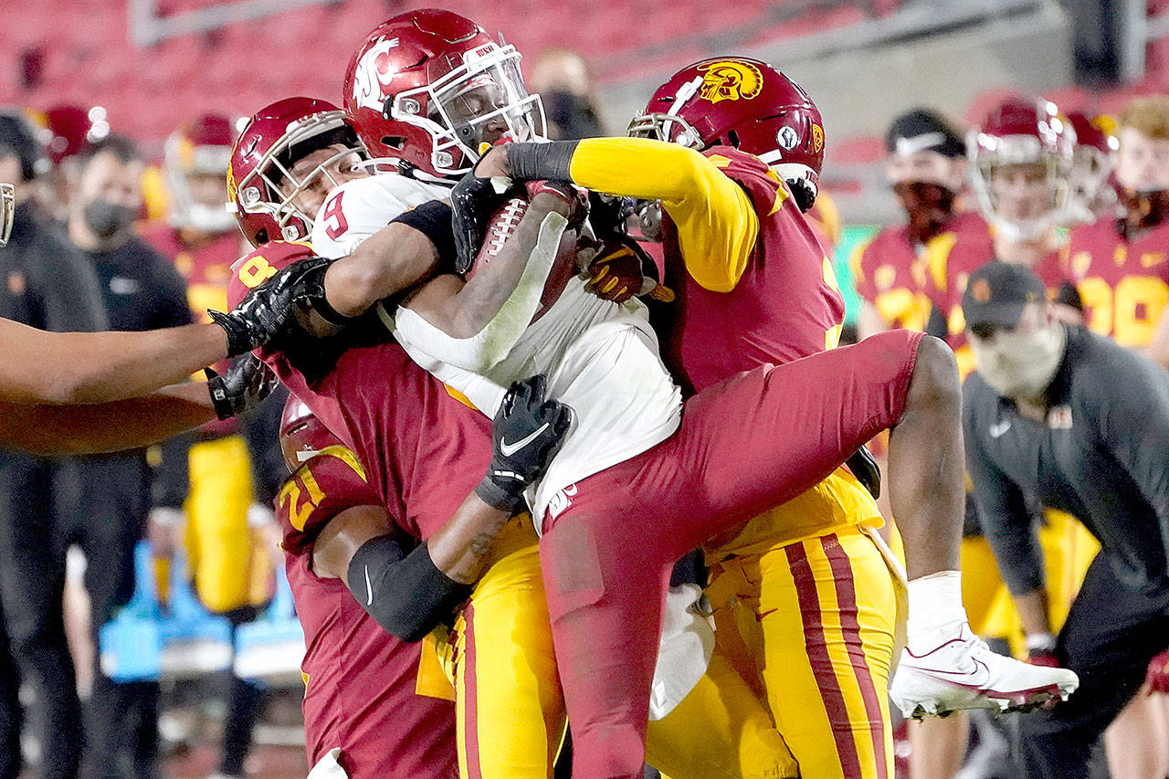 With precise execution and big-play excellence against a depleted Washington State secondary curiously playing man-to-man coverage against one of the best receiver groups in the country, the Trojans grabbed a 35-0 lead midway through the second quarter with just 214 yards of offense.