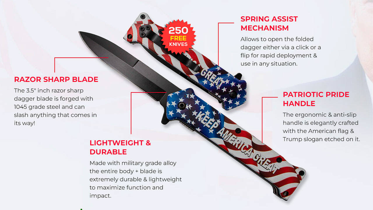 With so many commemorative and collectible gifts, consumers may find it challenging to choose the best option to show their support for Donald Trump. The Trump EDC knife stands above all coins, cards, and other memorabilia. Instead of only being meant for display purposes, this knife is available with a powerful and sharp blade, and the creators are currently giving it away for free. Consumers only have to cover shipping costs to see this knife in their mailbox in the next two weeks.